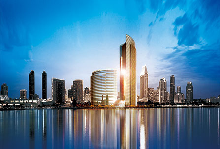 项目作为甲级标准写字楼矗立于深圳福田保税区,南望香港米埔田园风光,向西红树林自然保护区和深圳湾景观尽在眼前,总建筑面积42450㎡,主楼27层,副楼6层,以星级服务标准奠定区域商务中心地位。