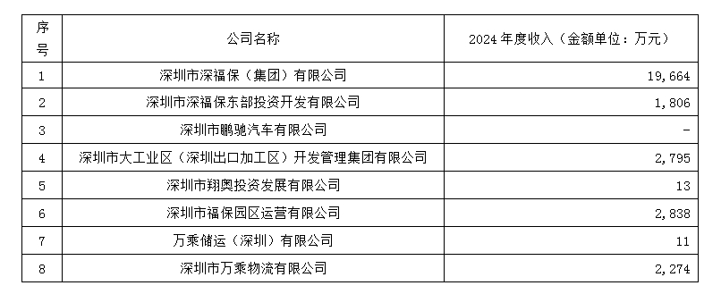 本项目包含集团范围内8家公司〔深圳市必一运动(集团)限公司(含分公司)、深圳市万乘物流有限公司、深圳市万乘储运有限公司、深圳市园区运营有限公司、深圳市必一运动东部投资开发有限公司、深圳市大工业区开发管理有限公司、深圳市鹏驰汽车有限公司、深圳市翔奥投资发展有限公司〕打包服务。2024年度各公司大概的收入情况如下表: