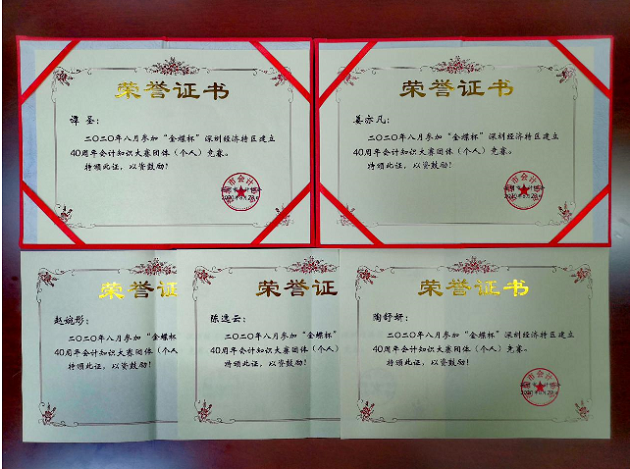 此外,为进一步调动集团财会人员持续学习专业理论知识的积极性,不断提升业务能力,集团预算财务部组成代表队参加了由深圳市会计协会和金蝶软件(中国)有限公司共同举办的深圳经济特区建立40周年“金蝶杯”会计知识大赛团体(个人)竞赛。通过参赛,集团财务人员进一步加强了财会理论知识学习,拓展了会计知识视野,有力推动了集团财务队伍建设,将为集团发展提供更坚实的财务保障。